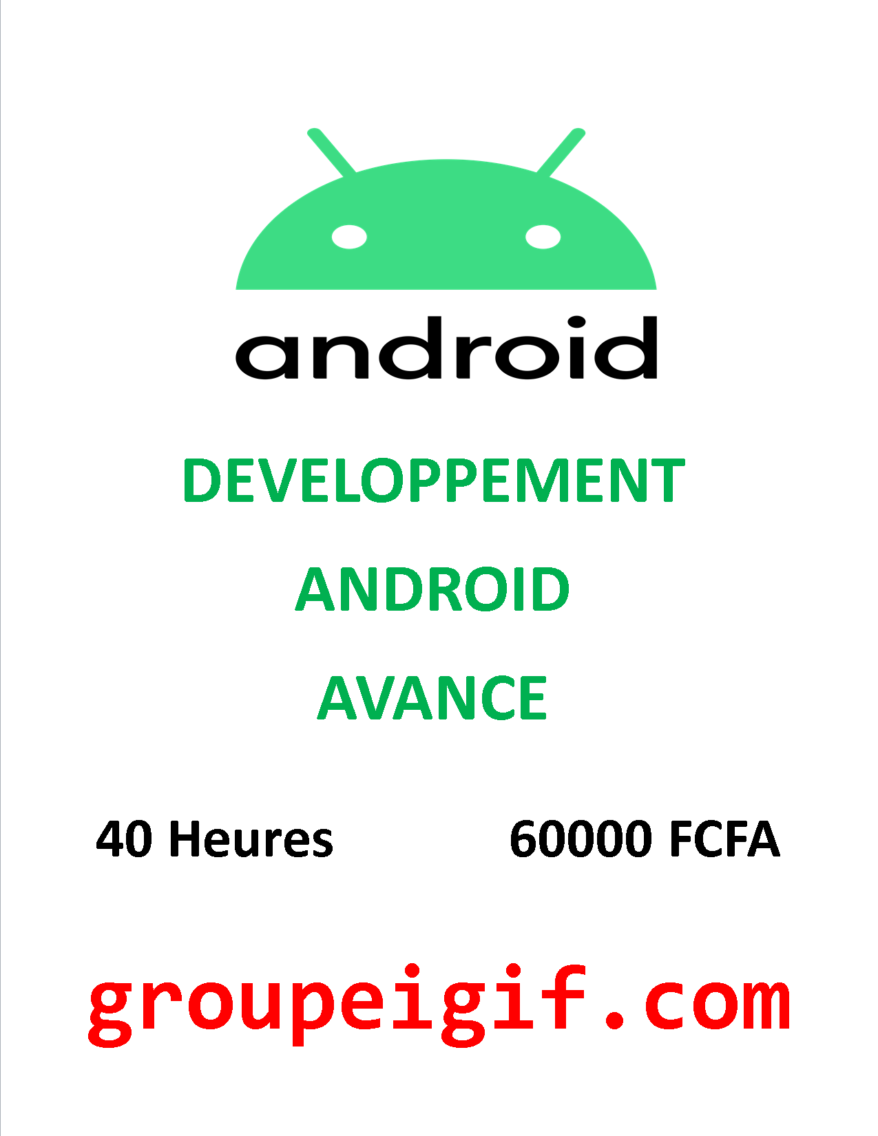 Ce cours nécessite la connaissance du langage Java et les fondamentaux de la programmation Android. Vous trouverez ces deux formations dans notre catalogue de cours. Le tarif du cours est de 60 000 FCFA pour un volume horaire de 40 heures.